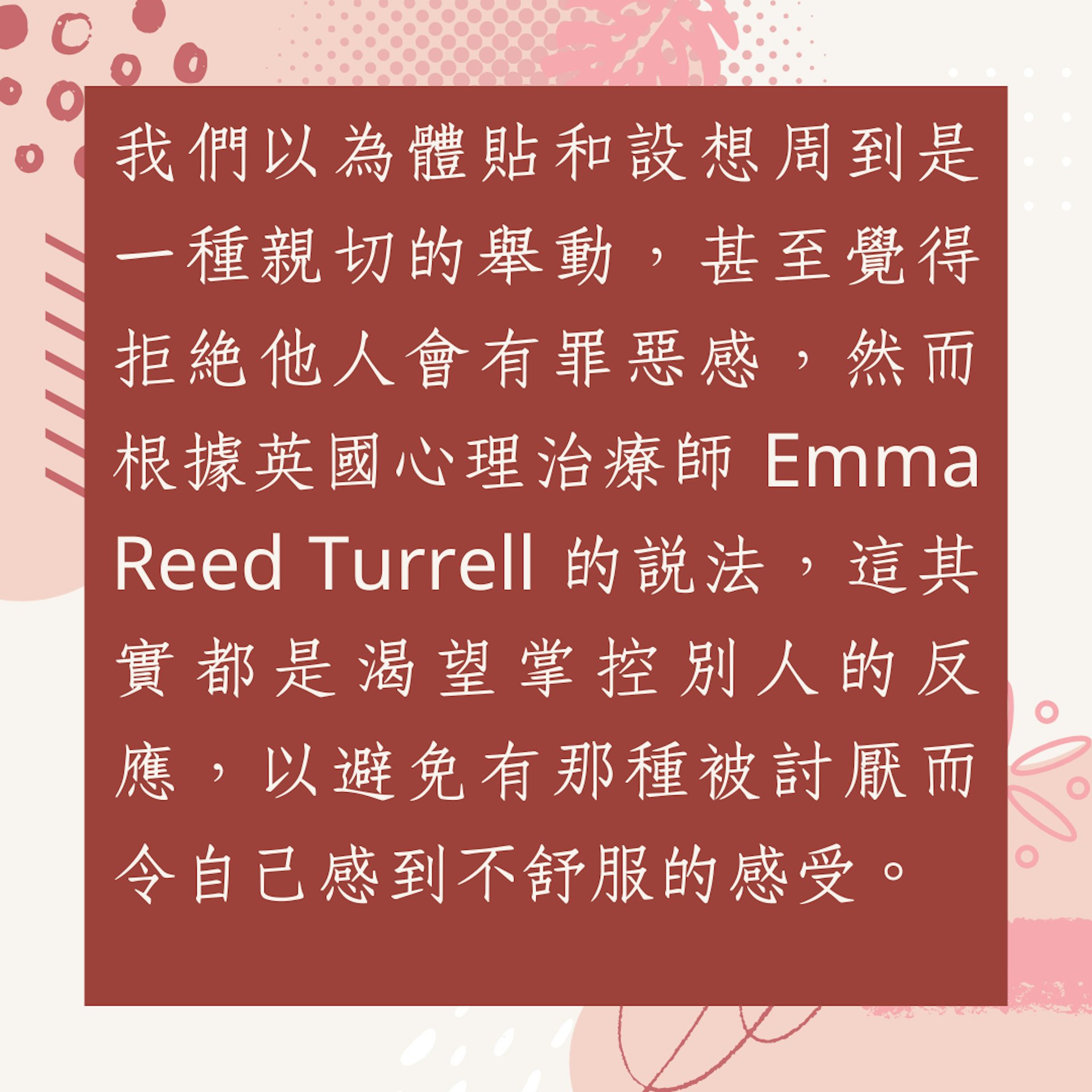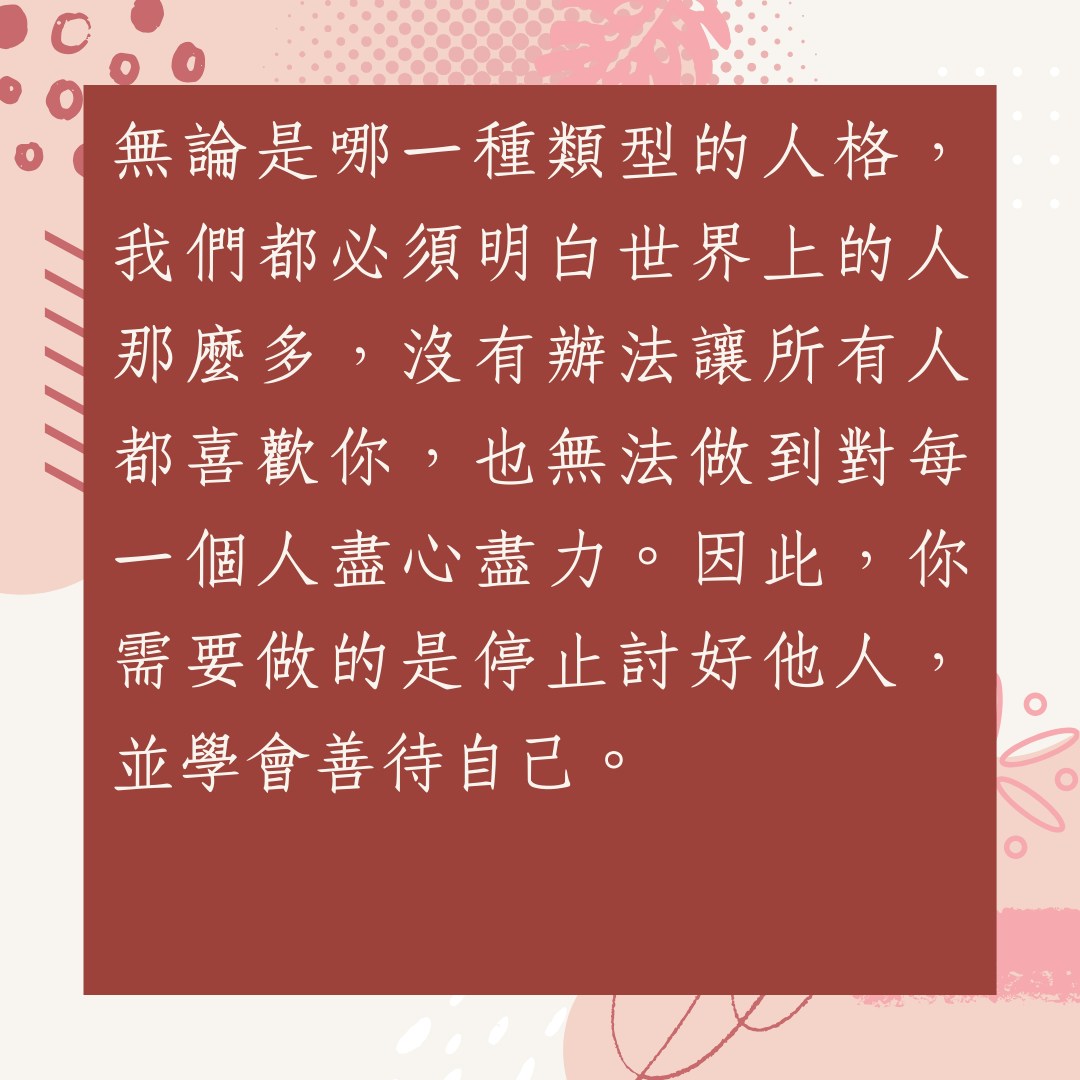三、鮮少拒絕:幾乎無法說「不」,即使內心百般不願,也會勉強答應。拒絕後會深陷內疚,自責不已。