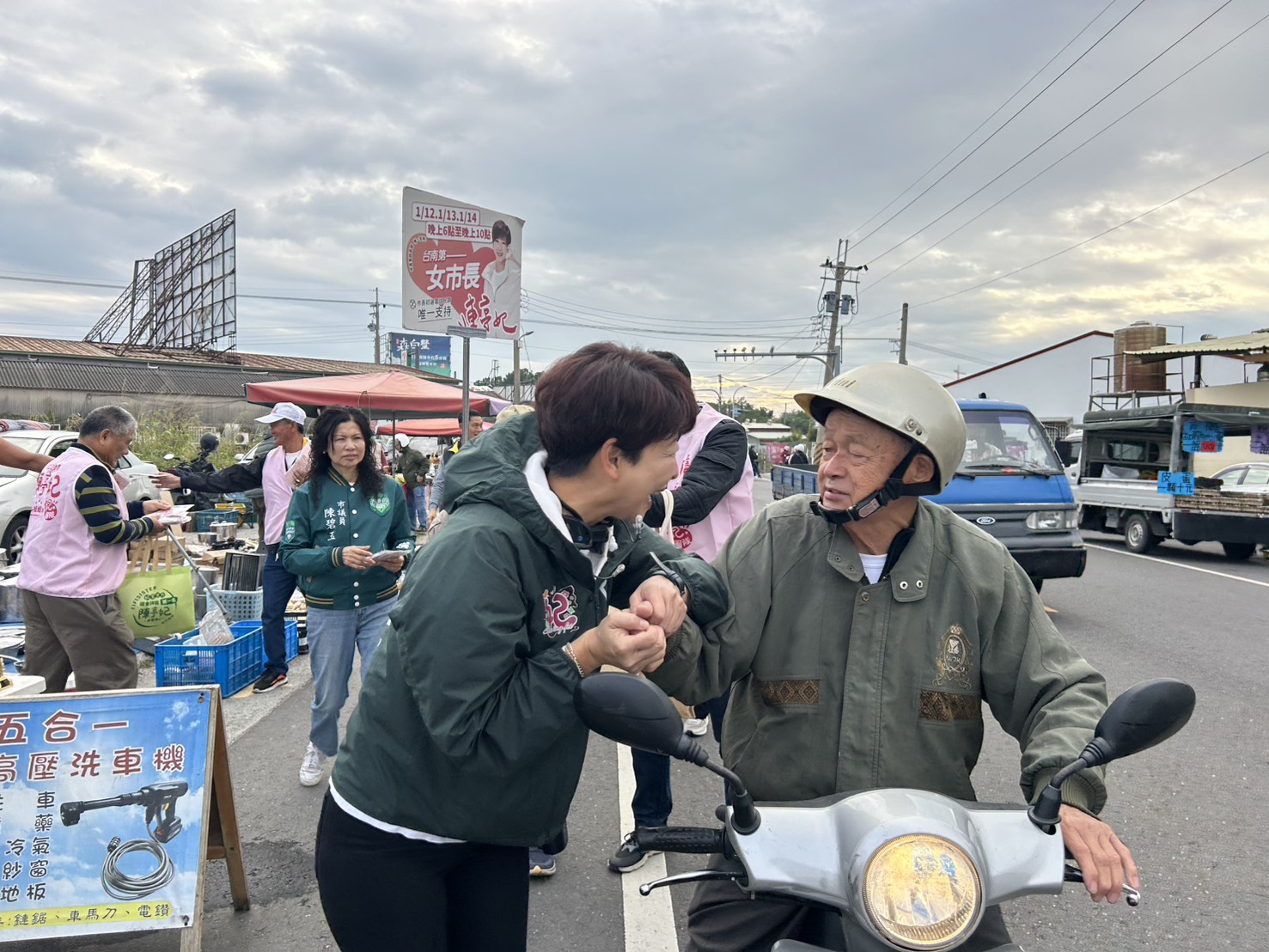 ▲台南市長參選人陳亭妃一早五點多就到善化牛墟掃街拜票。(立委陳亭妃團隊 提供)