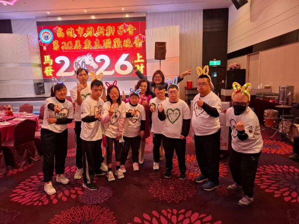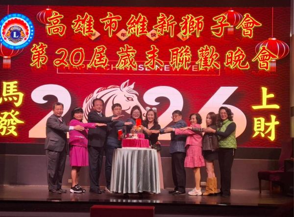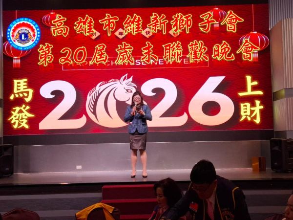 【視傳媒記者吉雄世高雄報導】2026年1月6日晚間,國際獅子會300E-3區高雄市維新獅子會第20屆歲末年終晚會於高雄市鳳山區和樂餐廳舉辦,該晚會由維新獅子會陳御斤會長攜手眾多獅友與社會賢達進行「寒冬送暖暨家園災後設備更新」公益捐贈活動,將社會服務金正式捐贈予社團法人高雄縣慈心慈善會,為弱勢家庭及災後重建注入即時而溫暖的公益力量。一襲紅裝,美麗動人的司儀-孔鈺婷秘書將會場程序運作得井然有序。    唐氏症喜憨兒們在台上表演隨著音樂和鼓聲帶動起熱鬧氣氛。