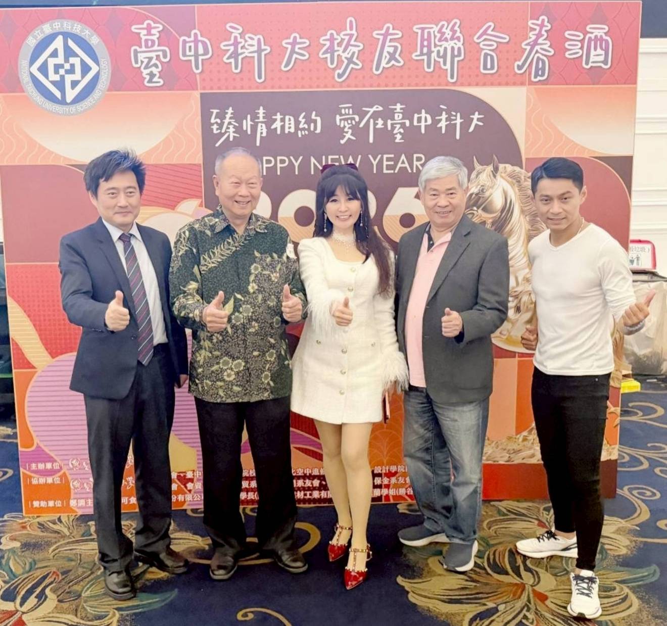 【記者 彭可可/綜合報導】國立臺中科技大學於3月8日舉辦「校友總會春酒聯歡午宴」,齊聚產官學界的校友,盛況空前。此次活動特別邀請到傑出校友、恩典電視臺新聞主播「寰宇天后」安琪菈(本名林淑凌)擔任主持人,並攜手廣播主持人吳鴻明共同主辦。安琪菈以美聲演唱《天后駕到》搭配磐石舞團的華麗表演,為活動熱烈開場,現場氣氛空前熱烈。