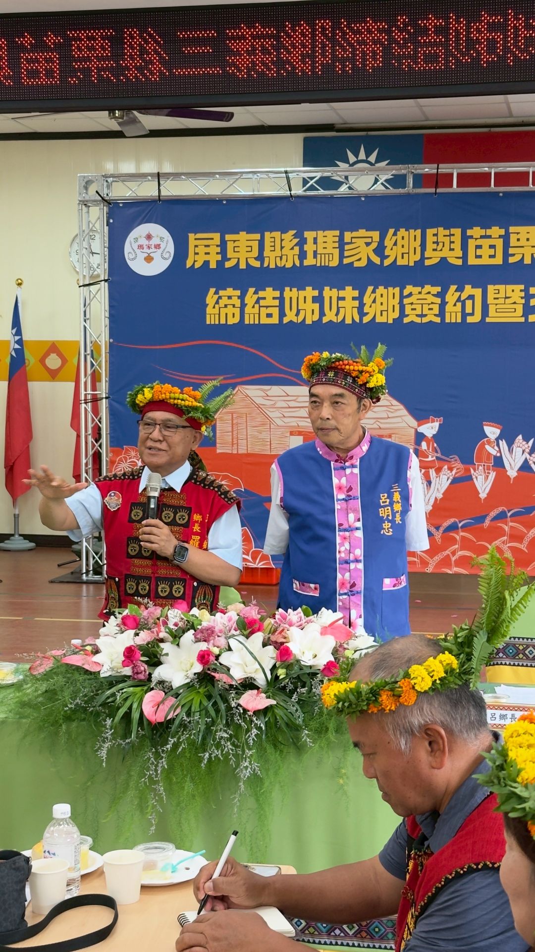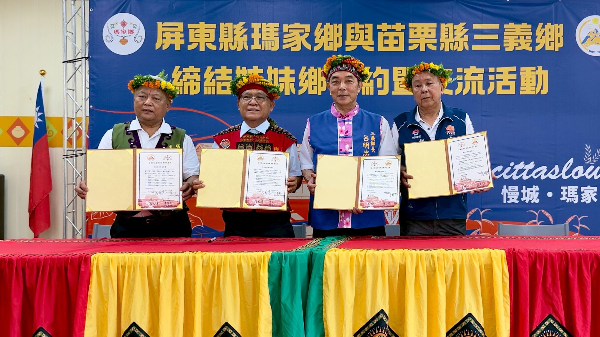 屏東縣瑪家鄉與苗栗縣三義鄉於4月23日瑪家鄉公所,正式簽署「姊妹鄉締結協定書」,並同步霸氣宣告:瑪家鄉全面啟動爭取「國際慢城(Cittaslow)」認證!在鏗鏘有力的排灣古謠震撼開場下,瑪家鄉長羅清仁與三義鄉長呂明忠雙手同飲排灣連杯酒。正式啟動是兩鄉行政機關的結盟,更是台灣原住民與客家族群,首度以「慢活哲學」為核心,共同攜手台灣深邃的文化底蘊推向國際舞台。