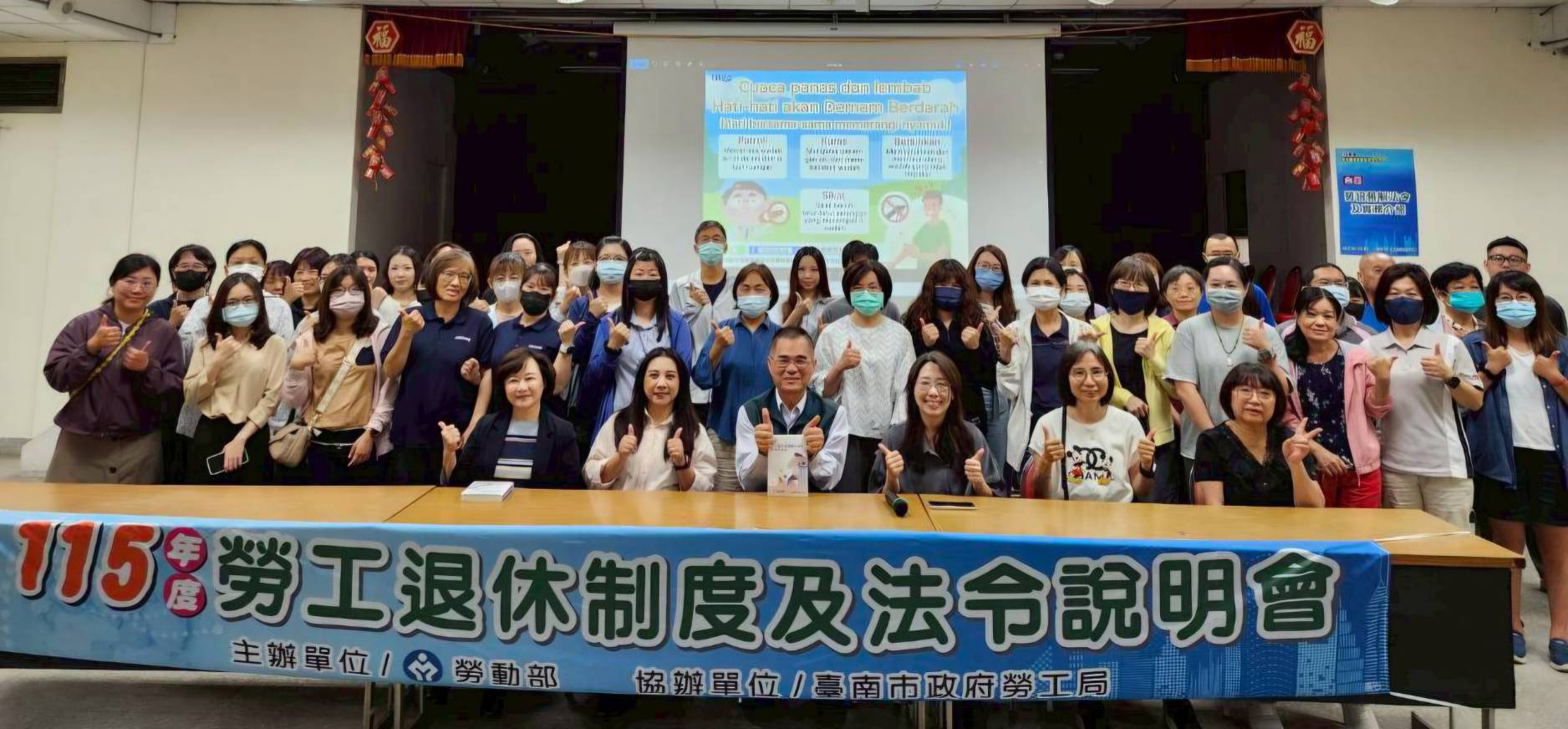 臺南市政府勞工局為持續推動勞工退休保障,落實市長黃偉哲「希望家園」理念,今(24)日與勞動部及勞動部勞動力發展署「移工留才久用服務中心」共同於善化啤酒廠辦理第二場「115年度勞工退休金制度及法令說明會」。延續首場宣導重點,強化新、舊制勞退制度說明、金融理財教育外,亦結合移工留才久用政策,協助事業單位一次掌握退休金提撥與留才制度。