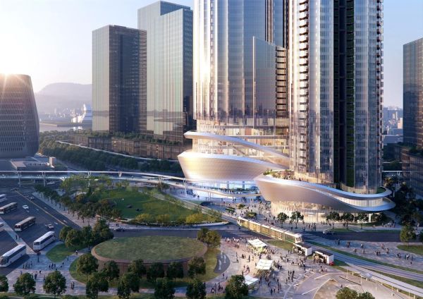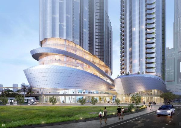 捷運局表示,本案由潘冀聯合建築師事務所規劃設計,規劃 45 層與 32 層兩棟 A 級商辦大樓,並設置商場、餐廳及員工安家宅,共約 5.2 萬坪開發量體,建物將透過空橋與旅運中心串聯,做為「高雄亞灣・鴻海旗艦總部」,亦開放其他科技企業進駐,預估創造 3,000 個就業機會,每年帶來 200 億元產值。透過TOD與捷運聯開案的推動,高雄市不僅展現宜居且高效的都市典範,更為城市注入嶄新活力,朝向國際化現代都市邁進,實現低碳永續的城市願景。