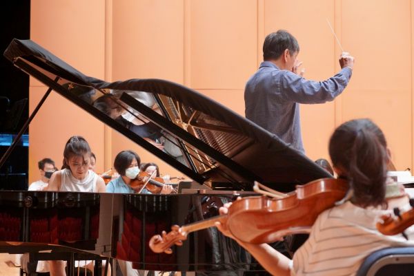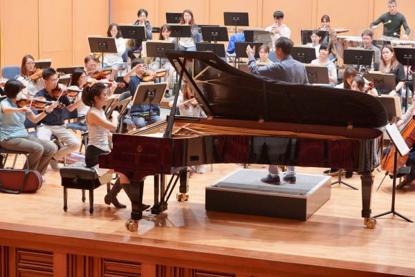 圖3-4:NTSO首席客席指揮水藍與駐團藝術家陳毓襄排練葛利格鋼琴協奏曲。