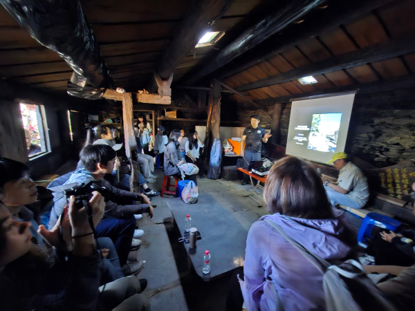 財經法律學系(財法系)大三生胡智涵分享,第一次走入保存如此完整的石板屋聚落,看見沒有電力、自來水與網路的生活方式,「才真正理解文化是活的,是當地人在日常中做出的選擇」。同系原民生盧敬升則說,校長提出的「去中心化」讓他反思,與人相處也應放下成見、先傾聽,視野才會真正開展。