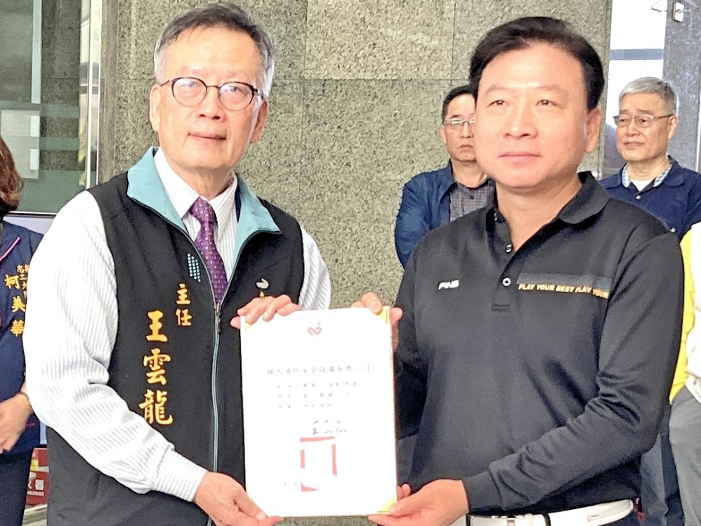 ▲新竹捐血中心聯手新竹縣警察局志工大隊1月18日舉辦 「捐血傳愛,守護生命!」捐血活動,新竹捐血中心主任王雲龍(左)致贈感謝狀予民間企業代表。